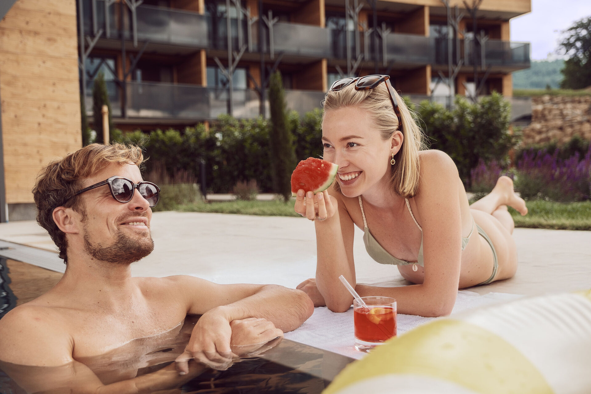 Unser neuer exklusiver WellnessbereichUnser brandneuer Wellnessbereich hat seine Pforten geöffnet! Auf satten 3.500 qm erwartet Sie eine Entspannungswelt, die keine Wünsche offen lässt und sowohl für Familien als auch für Erwachsene in eigenen Adults Only Bereichen exklusive Rückzugsorte bietet. Highlight ist der 36 °C warme FKK SKYpool mit Panoramablick, ergänzt durch eine EVENTsauna und einen Bereich speziell für Erwachsene. Familien können sich auf Innen- und Außenpools, eine Textilsauna und einen Babypool freuen.Dahoam im